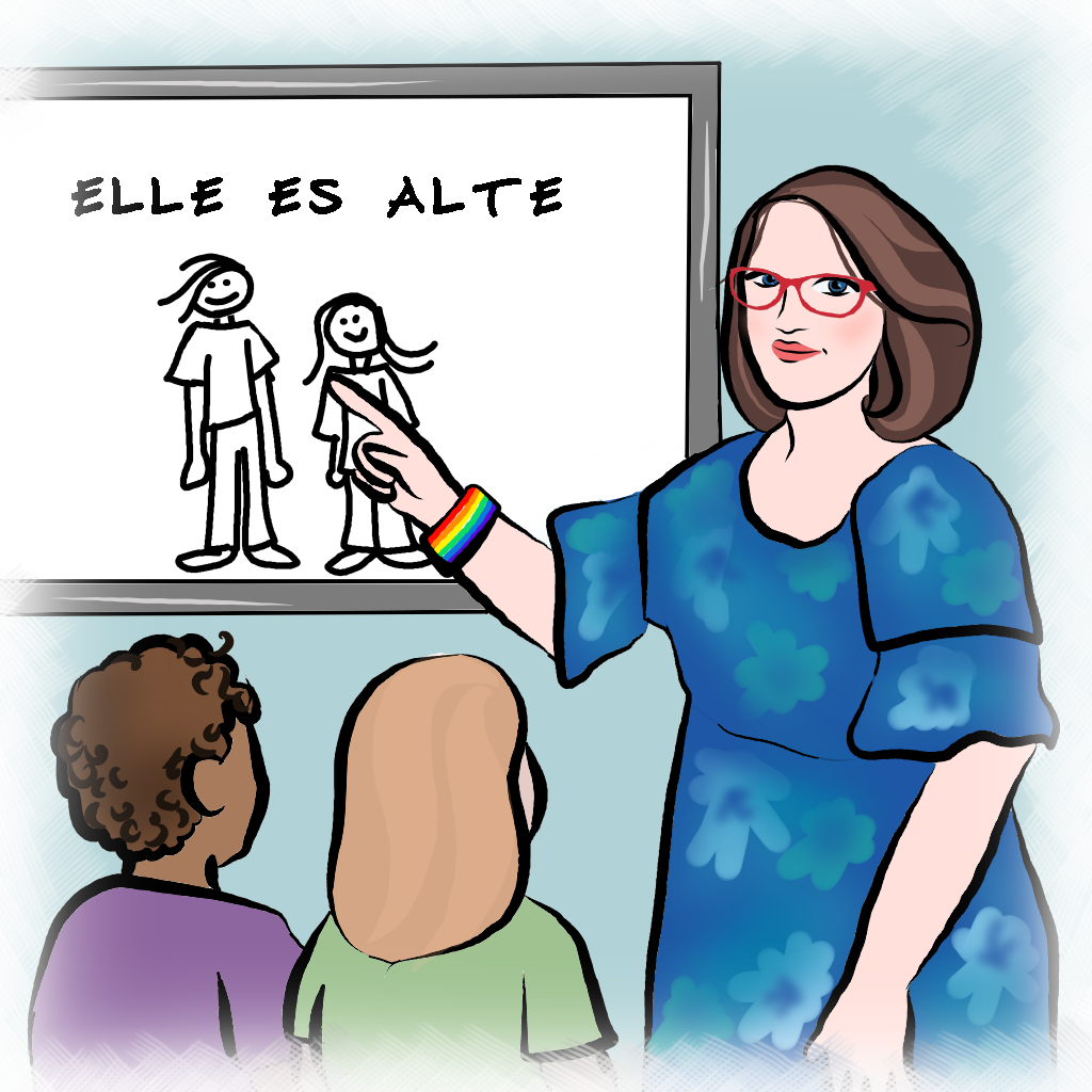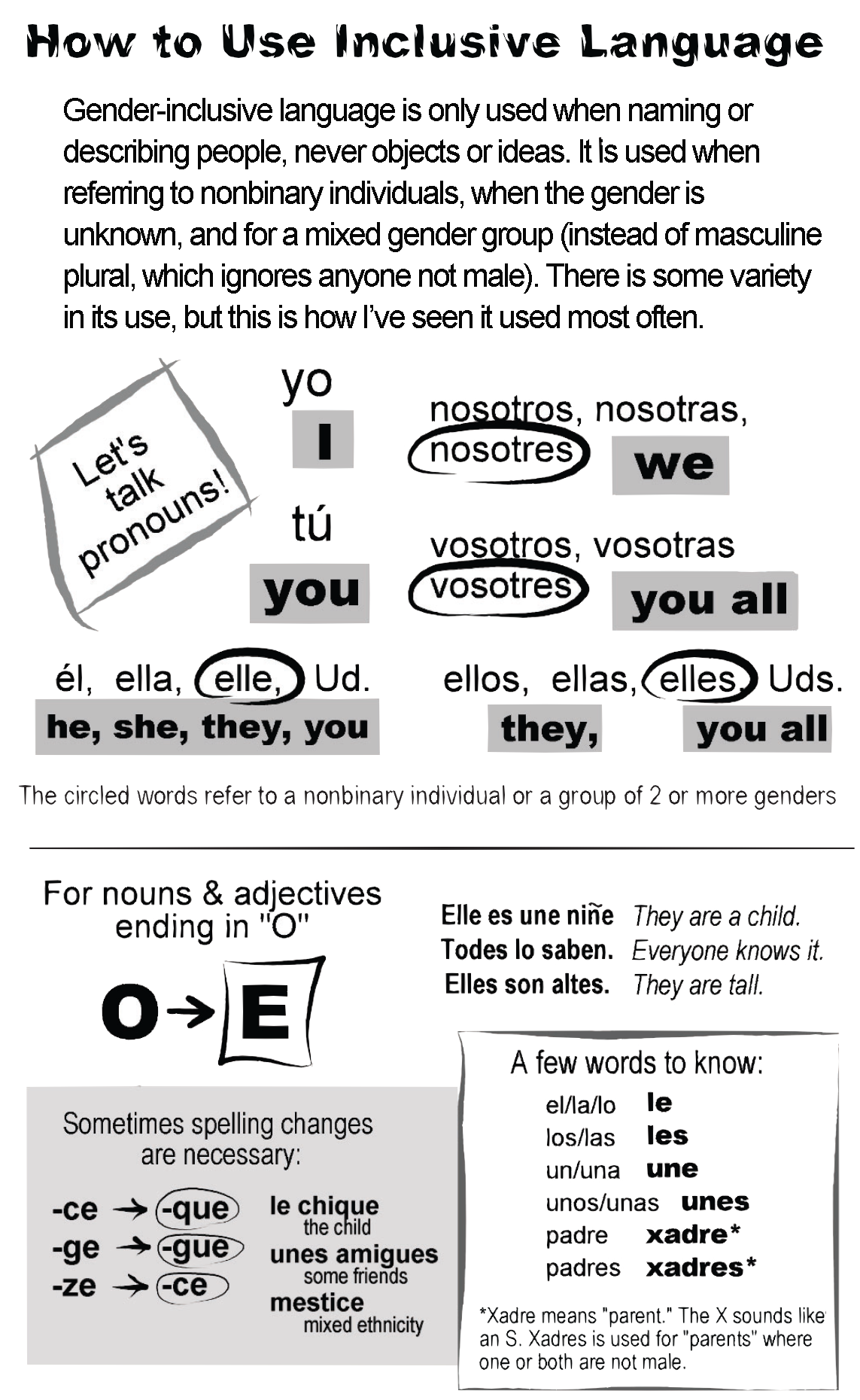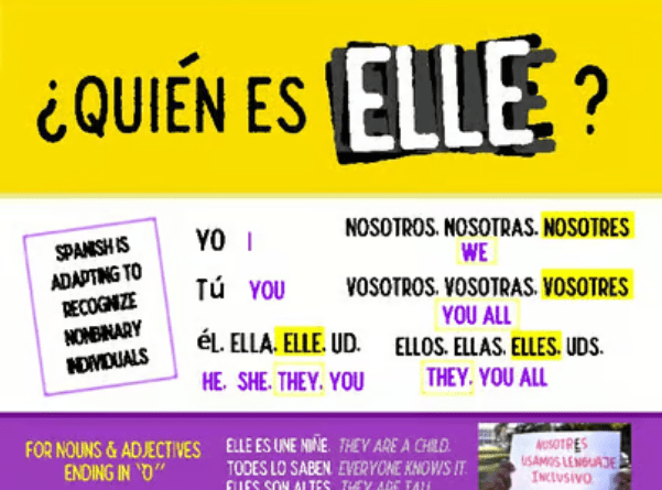 My students ask for it. Simply put, my non binary students and their friends don’t use “he/she” pronouns, so they don’t feel comfortable using “él/ella” either. They want to know more. They are actually interested in learning to communicate in Spanish and want to speak it authentically. (Spanish teacher’s dream, right?)